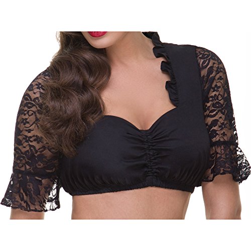 ALMBOCK Dirndlbluse Spitze schwarz | Dirndlbluse schwarz mit Spitzenärmel aus französischer Webspitze | Dirndlbluse schwarz Spitze 40 – Modell Felice B107