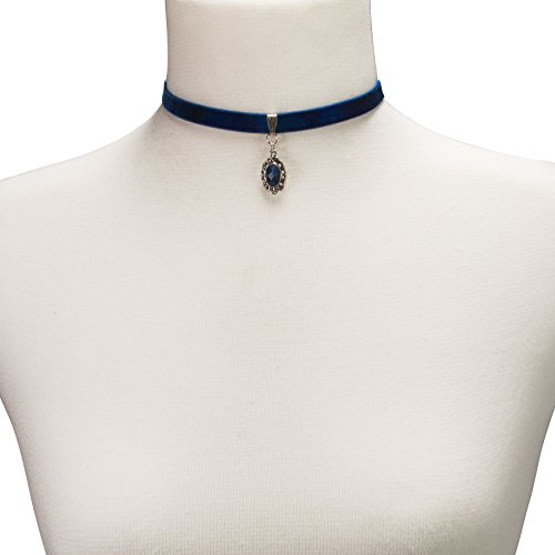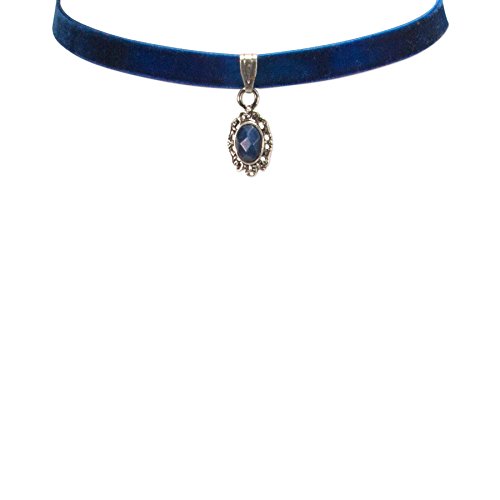 Alpenflüstern Trachten-Samt-Kropfband Trachten-Stein – nostalgische Trachtenkette enganliegend, Kropfkette elastisch, eleganter Damen-Trachtenschmuck, Samtkropfband schmal blau DHK196
