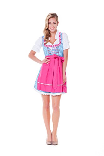 3tlg. Dirndl-Set – Trachtenkleid, Bluse, Schürze, Gr.36, türkis-fuchsia – ALM627T