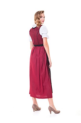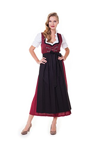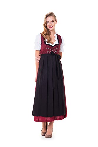 Alpenmärchen 3tlg. Dirndl-Set lang – Trachtenkleid, Bluse, Schürze, Gr. 48, rot-schwarz – ALM501R