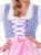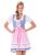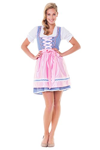 Das 3-teilige Dirndl-Set besteht aus einem karierten Kleid mit einem eckig ausgeschnittenen Oberteil, einer bunten Blumen-Bordüre an den Seiten, mit farblich passenden Glitzersteinchen besetzte Miederhaken, einem passenden Satinband zum schnüren und einem vorderseitigen Reissverschluss. Im Angebot enthalten sind ausserdem eine Schürze, die am unteren Teil mit feinen Satinbändchen und einem Karomuster bestickt ist und eine Bustierbluse mit kurzen Puffärmeln, die bis unter die Brust reicht und durch einen eingearbeiteten Tunnelzug individuell geschnürt werden kann. Das Dirndlkleid hat eine Gesamtlänge von ca. 90 cm und eine Rocklänge von ca. 50 cm. Material * Kleid: 55% Baumwolle, 45% Polyester * Schürze: 100% Polyester