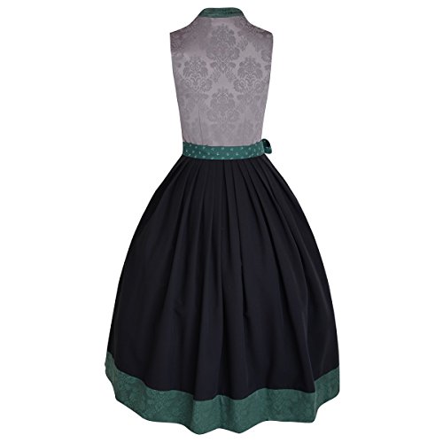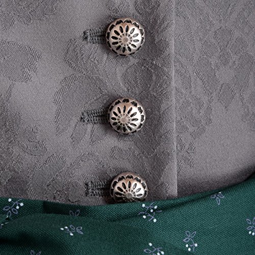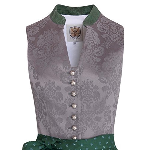 Elegantes, langes Dirndl Josephine in einem einzigartigen Grau von der Premiummarke Apple of my Eye. Das Mieder hat einen eleganten Stehkragen mit einem gerade verlaufenden Ausschnitt. Das florale Muster auf dem Mieder haucht dem Dirndl ein Stück weit Leben ein, durch den eleganten Glanz. Die tannengrüne Schürze ist hochwertig verarbeitet und hat ebenfalls ein dezentes florales Muster und eine hübsche Borte. Der schwarze Dirndlrock hat eine breite Borte, ebenfalls in kräftigem Tannengrün samt floralem Muster und misst eine Länge von 80 cm.Hinweis: Die Schlaufenbänder, mit denen die Dirndlschürze am Dirndl gehalten wird dienen lediglich der Aufbewahrung und dem Transport der Schürze. Sie können diese abtrennen und sollte die Schürze ohne deren Verwendung binden. So sind Sie mit der Dirndlschürze in der Höhe flexibel.Hinweis zur Abbildung: Sofern nicht anders beschrieben, werden unsere Dirndl ohne Dirndlbluse geliefert. Dirndl und Bluse können Sie bei uns in verschiedenen Größen bestellen, so passt die Tracht perfekt. Unser Tipp: Variieren Sie z. B. zwischen weißen und schwarzen Dirndlblusen, viele unserer Dirndl können mit beiden Farben und verschiedenen Dirndlblusen (z. B. Langarmbluse, Kurzarmbluse) getragen werden. Zudem können fast alle unsere Dirndl für kleines Geld (ca. 15 Euro) beim Schneider angepasst werden wenn es einmal nicht passt. So wird ein wunderschönes Dirndl zu Ihrem perfekt sitzenden Dirndl Unikat!