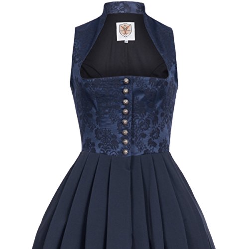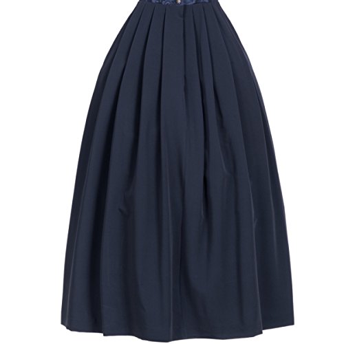 Ein schlichtes langes Dirndl Vronerl in Blau von Apple of my Eye. Das Mieder ist mit wundervollen großen Blumen verziert. Das Trachtenkleid hat einen eleganten Stehkragen, der sich nach unten zu einem tiefen Dekolleté verbreitert. Dieses lange Dirndl hat auf der Vorderseite Knöpfe und wird ohne Schürze an Sie geliefert. Bei unserem breiten Sortiment an Dirndlschürzen werden Sie bestimmt die für Sie persönlich passende Schürze dazu finden. Der Dirndlrock misst eine Länge von 100 cm. Apple of my Eye produziert ausschließlich innerhalb der EU um deren hohen Qualitätsstandards gerecht zu bleiben.Hinweis: Die Schlaufenbänder, mit denen die Dirndlschürze am Dirndl gehalten wird dienen lediglich der Aufbewahrung und dem Transport der Schürze. Sie können diese abtrennen und sollte die Schürze ohne deren Verwendung binden. So sind Sie mit der Dirndlschürze in der Höhe flexibel.Unser Tipp: Variieren Sie z. B. zwischen weißen und schwarzen Dirndlblusen, viele unserer Dirndl können mit beiden Farben und verschiedenen Dirndlblusen (z. B. Langarmbluse, Kurzarmbluse) getragen werden. Zudem können fast alle unsere Dirndl für kleines Geld (ca. 15 Euro) beim Schneider angepasst werden wenn es einmal nicht passt. So wird ein wunderschönes Dirndl zu Ihrem perfekt sitzenden Dirndl Unikat!