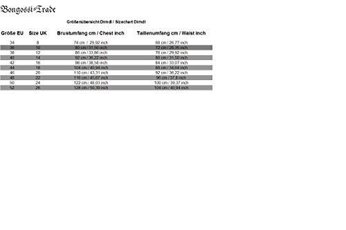 Das Dirndlset besteht aus einer weißen Bluse, einem schwarzen Kleid sowie einer grünen Schürze. Die Bluse besteht aus einem Baumwollgemsich, ist leicht gerüscht mit Puffärmeln. Die Schürze ist ebenfalls aus grünem Baumwollstoff. Das Kleid welches aus weichem, schwarzen Baumwollsstoff besteht, besticht durch seine schönen Stickereien im Bereich des Ausschnitt. Verschlossen wird das Kleid durch einen nicht sichtbaren Reißverschluß am Rücken sowie durch die klassische Zierbandschnürung am Dekolletee.