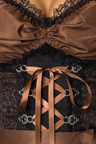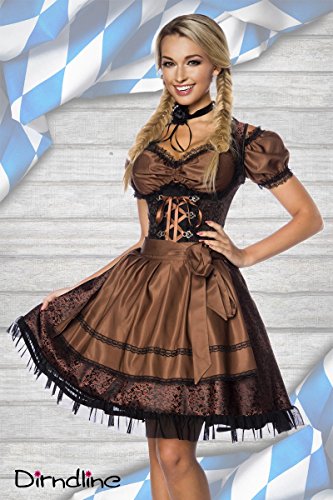 Hochwertiges Mini-Dirndl ( Trachtenkleid, Minikleid, Dirndl Kostüm, Minidirndl, Party Outfit) mit Bluse und Schürze. Detailliert gemusterter Jacquard-Stoff edel und aufwändig verarbeitet. Unterbrust-Dirndl mit flexiblen Formstäbchen. Farblich abgesetzter Spitzenbesatz am Ausschnitt. Zierschnürung mit hübschen Dirndl-Ösen. Ausgestelltes Rockteil mit Rüschensaum. Reißverschluss in der Seitennaht. Passende Bluse und Schürze inklusive. Bluse mit Raffung und Schnüren.- Seitenlänge Dirndl ca. 71 cm- Rocklänge Dirndl ca. 47 cm- Rückenlänge Bluse ca. 21 cm- Gesamtlänge Schürze ca. 38 cmHochwertige Qualität von DIRNDLINE.Trend: Peppen Sie das Dirndl noch zusätzlich mit einem Petticoat auf, auch hier im Shop erhältlich, Artikel Nr.: A13041Passend für das Oktoberfest oder zu jeder anderen Gelegenheit!Set besteht aus: Kleid, Schürze und BluseMaterial:Dirndl: 100% PolyesterBluse/Schürze: 100% PolyesterWichtige Infos Richtig Waschen:- Das Dirndl ist im Wäsche-Säckchen bei 30° waschbar.- Alle abnehmbaren Details wie Satin-Bänder und Kettchen sollten vorher unbedingt abgenommen werden.Richtiges Anziehen:- Lockern Sie vor Anprobe die Schnürung.- Bitte ziehen Sie das Dirndl über den Kopf an und steigen Sie nicht von unten in das Kleid.- Zum leichteren Hochziehen des Reißverschlusses ziehen Sie einfach die Schultern nach hinten.Größen Etikett:- Die Dirndl sind im Original nicht immer der Größe entsprechend etikettiert.- Bitte achten Sie NUR auf das Etikett, was sich auf der Verpackungsfolie befindet.Die richtige Größe finden:- Die Dirndl fallen größengerecht aus, sitzen aber figurbetont mit schmaler Taille.- Wenn Sie es etwas lockerer tragen möchten, bestellen Sie es sich einfach eine Nummer größer. Ab BH Cup C sollte bei Dirndl und Bluse eine Nummer größer, ab D sogar 2 Nummern größer gewählt werden.Richtig Maß nehmen, ein Bespiel:- Sie haben einen Brustumfang von 91cm (Gr.38)