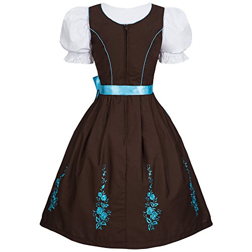 Dieses Dirndl Set besteht aus einem Trachtenkleid, einer kurzen Dirndlbluse und der dazu passenden Schürze. Die kurze weiße Trachtenbluse hat Puffärmel. Die klassische Zierschnürung darf natürlich nicht fehlen. Die Kleider fallen kleiner aus als gewohnt, bitte die Größentabelle unbedingt beachten. Materialzusammensetzung: Kleid: 65% Baumwolle und 35% Polyester, Bluse und Schürze: 100% Polyester gefertigt