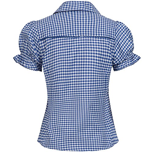 Hübsche Trachtenbluse, leicht tailliert mit hübschen Rüschen längs der Knopfleiste welche mit einer passenden Mausezähnchenborte zusätzlich verziert wurde, der Marke Gaudi-Leathers. Das Material ein Baumwoll/Polyesterrmix, es ist angenehm zu tragen und pflegeleicht. Diese Trachtenbluse ist figurbetonend geschnitten und passt zu Ihrer Trachten Lederhose und kann natürlich auch zu einem Rock getragen werden. Die Trachtenbluse ist in blau, rot, rosa, lila und grün weiß kariert verfügbar.