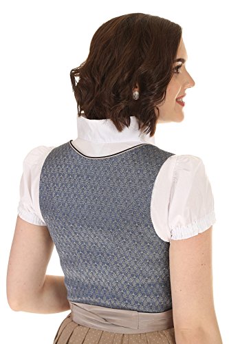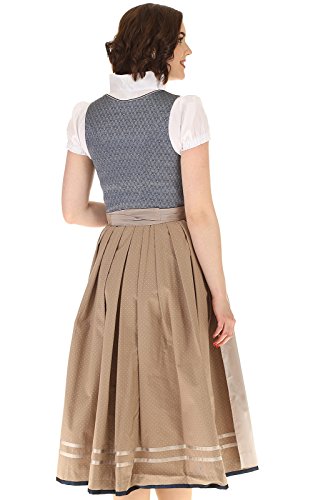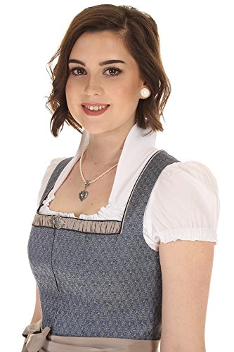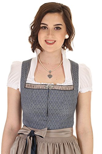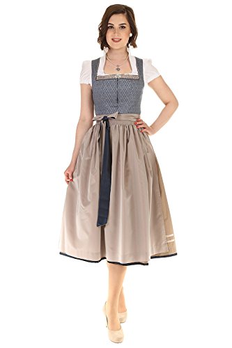 Hammerschmid Damen Dirndl lang Frillensee 21213 Hammerschmid Dirndl in Blau-Taupe. Das edle Brokat-Mieder präsentiert sich mit einer gesmokten Taftblende und dekorativen Metallschließe am Ausschnitt. Der getupfte Baumwollrock mit einer Einschubtasche rechts, wird von einer eleganten Taftschürze mit blau unterlegten Bändern verziert. Rocklänge: 80cm. Farbe: Mieder: Blau, Rock und Schürze: Taupe. Material: Mieder: 52% Polyester 48% Leinen, Futter: 97% Baumwolle 3% Elasthan, Rock: 100% Baumwolle Schürze: 72% Polyester 28% Acetat. Pflegehinweis: Reinigung Material: Mieder: 52% Polyester 48% Leinen Futter: 97% Baumwolle 3% Elasthan Rock: 100% Baumwolle Schürze: 72% Polyester 28% Acetat Pflegehinweis: Reinigung
