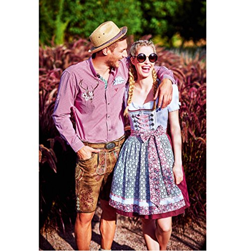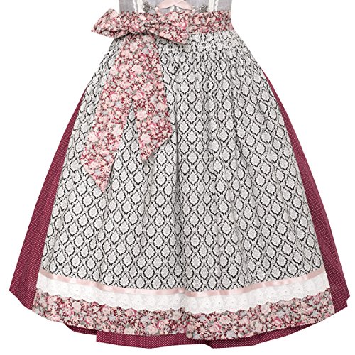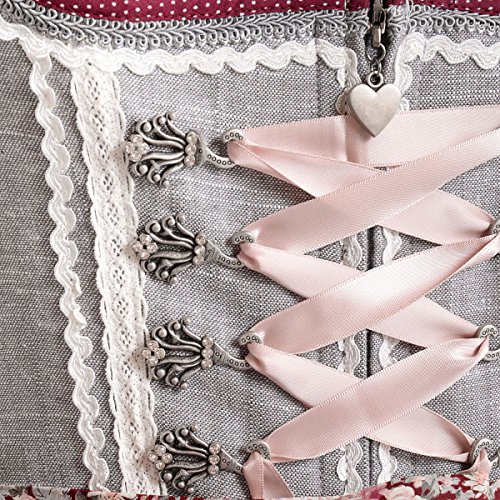 Ein wunderschönes Midi Dirndl Lori in Grau von Krüger Dirndl. Das Miederoberteil ist mit einer hübschen Borte versehen, die sich bis hin zum Reisverschluss zieht. Am Reisverschluss ist ein Anhänger aus Herz befestigt. Die florale blaue Schürze ist das Highlight am Dirndl, da Sie mit Blumen, Blättern und weißen Stickereien versehen ist. Der gepunktete Rock ist in der Farbe Bordeaux, selbiges findet sich am Ausschnitt wieder. Der Dirndlrock misst eine Länge von 60 Zentimeter.Hinweis zur Abbildung: Sofern nicht anders beschrieben, werden unsere Dirndl ohne Dirndlbluse geliefert. Dirndl und Bluse können Sie bei uns in verschiedenen Größen bestellen, so passt die Tracht perfekt. Unser Tipp: Variieren Sie z. B. zwischen weißen und schwarzen Dirndlblusen, viele unserer Dirndl können mit beiden Farben und verschiedenen Dirndlblusen (z. B. Langarmbluse, Kurzarmbluse) getragen werden. Zudem können fast alle unsere Dirndl für kleines Geld (ca. 15 Euro) beim Schneider angepasst werden wenn es einmal nicht passt. So wird ein wunderschönes Dirndl zu Ihrem perfekt sitzenden Dirndl Unikat!