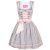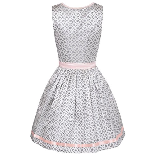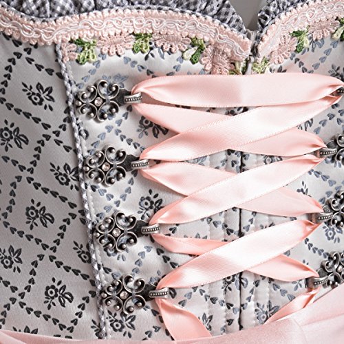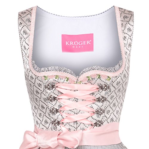 Ein fesches Mini Dirndl Leni in der Farbe Grau von Krüger Dirndl. Am Dekolletee entlang gibt es mehrere Raffungen, die farblich sehr gut zum Dirndlkleid und auch der Schnürung passt. Der Stoff des gesamten Dirndls ist durchgängig in einem glänzenden Grauton gehalten, mit einem Blüten und Herzmuster in Schwarz. Die karierte Schürze ist in Schwarz und hat am unteren Ende eine Borte aus dem Stoff des Dirndls selber und eine Borte aus dem Rosa Stoff, den man bereits am Mieder und dem Rocksaum sehen kann. Es ergibt sich ein sehr harmonisches Gesamtbild, sodass sich die Trägerin in solch einem Dirndl einfach nur wohlfühlen kann. Der Dirndlrock ist 50 Zentimeter lang.Hinweis zur Abbildung: Sofern nicht anders beschrieben, werden unsere Dirndl ohne Dirndlbluse geliefert. Dirndl und Bluse können Sie bei uns in verschiedenen Größen bestellen, so passt die Tracht perfekt. Unser Tipp: Variieren Sie z. B. zwischen weißen und schwarzen Dirndlblusen, viele unserer Dirndl können mit beiden Farben und verschiedenen Dirndlblusen (z. B. Langarmbluse, Kurzarmbluse) getragen werden. Zudem können fast alle unsere Dirndl für kleines Geld (ca. 15 Euro) beim Schneider angepasst werden wenn es einmal nicht passt. So wird ein wunderschönes Dirndl zu Ihrem perfekt sitzenden Dirndl Unikat!