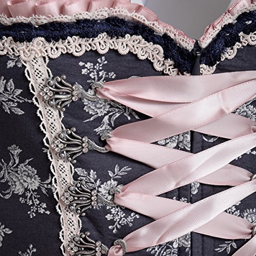 Ein umwerfendes mini Dirndl Marina von Krüger Dirndl in Dunkelblau. Hier zeigt der Trachtenhersteller Krüger Dirndl ein hübsches Dirndl aus Baumwolle in einem satten Dunkelblau. Als Kontrast zieren Borten in Cremeweiß und Lachs den gesamten Ausschnitt und auch den Bereich der Miederhaken. Auch diese gelten als kleine Hingucker mit Steinbesatz und auffälliger Formgebung. Ganz besonders gilt es bei diesem Dirndl die  lachsfarbene, hochwertige Schürze aus 95% Seide zu erwähnen. Diese lässt sich nicht nur sehr angenehm anfassen, sondern fällt auch besonders weich. Hübsche Borten aus Cremeweißer oder blauer, gehäkelter Spitze werten diese zusätzlich auf. Der Dirndlrock mit Einschubtaschen misst eine Länge von 50 Zentimeter.Hinweis zur Abbildung: Sofern nicht anders beschrieben, werden unsere Dirndl ohne Dirndlbluse geliefert. Dirndl und Bluse können Sie bei uns in verschiedenen Größen bestellen, so passt die Tracht perfekt. Unser Tipp: Variieren Sie z. B. zwischen weißen und schwarzen Dirndlblusen, viele unserer Dirndl können mit beiden Farben und verschiedenen Dirndlblusen (z. B. Langarmbluse, Kurzarmbluse) getragen werden. Zudem können fast alle unsere Dirndl für kleines Geld (ca. 15 Euro) beim Schneider angepasst werden wenn es einmal nicht passt. So wird ein wunderschönes Dirndl zu Ihrem perfekt sitzenden Dirndl Unikat!