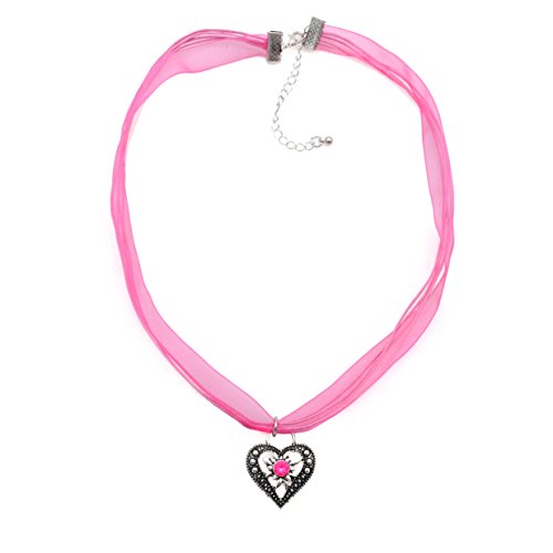 LUUK LIFESTYLE Oktoberfest, Wiesn, Trachten, Dirndl Kette aus Organzaband mit Herz und Straßstein, rosa