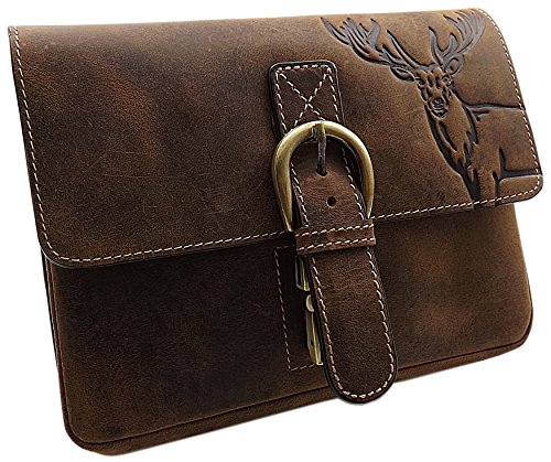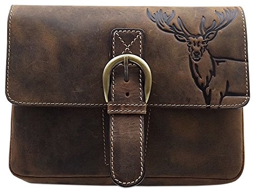 ECHT BÜFFEL-VOLLLEDER HANDTASCHE IN QUERFORMAT MIT HIRSCH-MOTIV MIT TRAGEGURT