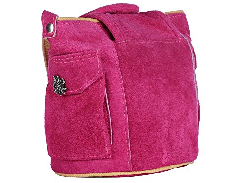 Zu jedem Outfit gehört eine Handtasche! Am besten eine perfekt zum Dirndl passende Tasche aus feinem Leder mit typischer Trachtenstickerei. Kleine Tasche für das Nötigste, Innenmaße: BxHxT ca 15x12x6cm. Echtes Leder, Innenmaterial: Polyester. Hauptfach doppelt gesichert: Reißveschluss und mit Druckknopf verstärktem Klettverschluss. Längenverstellbarer Schulterriemen, seitlich je eine kleine Außentasche mit Klettverschluss und Edelweiß-Applikation.