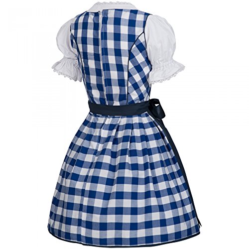 PAULGOS Dirndl Set 3 Teilig Marie, Trachtenkleid, Dirndl Bluse, passende Schürze, verschiedene Farben, Farbe:Blau, Damen Größe:42