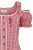 Diese süße und trachtige Carmenbluse verfügt über ein paar niedliche Details. Die Trägerchen der Bluse sind mittels zwei Hirschhornknöpfen höhenverstellbar. Die Ärmelchen sind am Abschluss oben sowie unten leicht gerafft und mit einer weißen Rüschenbordüre umrandet. Auch den Ausschnitt ziert eine weiße Rüschenbordüre. Die Abnäher sind einfarbig weiß gestaltet, was einen tollen Kontrast bildet. Hinten ist eine zarte Zierschnürung aus transparenten, weißen Band angebracht. Die Knopfleiste ist mit Knöpfen in Hirschhornoptik versehen und links sowie rechts von einer Rüschenbordüre umrandet. Das Karomuster ist auf der Knopfleiste gedreht. Links und rechts der Knopfleiste ist eine aufwendige Zierstickerei in rot angebracht.
