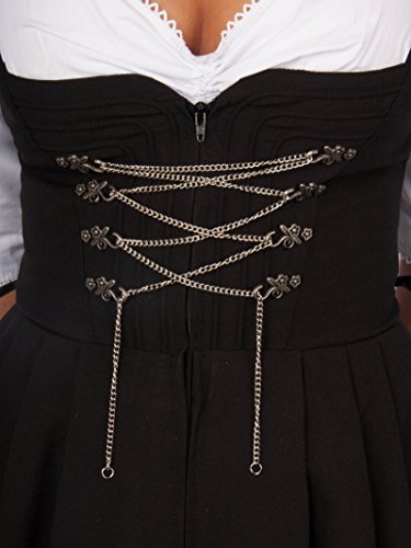– Das Dirndl hat stilvolle Miederhaken, sowie eine Metallkette
