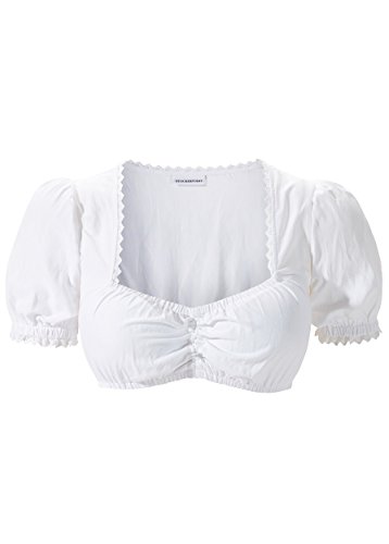 Mit dieser Dirndlbluse original Stockerpoint-Modell geben Sie Ihrem Trachtendirndl einen jungen Touch. Sie wirkt leger und ist doch mit einer hochwertigen Spitze am Ausschnitt und am elastischen Armbündchen verziert. Die Dirndlbluse lässt sich vorne raffen und kann so individuell auf den Ausschnitt des Dirndls eingestellt werden. Da sie zu jedem Modell passt, eignet sie sich sehr gut als Zweitbluse. Die Dirndlblusen sind eher weit geschnitten. Liegen Sie zwischen zwei Größen, empfehlen wir Ihnen die kleinere Größe.
