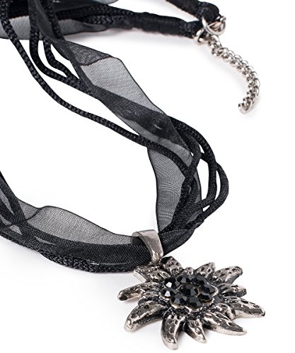 Dieses schmuckvolle Accessoire in edlem Design darf bei keinem Dirndl- oder Trachten-Outfit fehlen. Das feine Organzaband mit silberfarbenem Trachtenzierteil unterstreicht den Ausdruck von Festlichkeit und zieht alle Blicke auf sich. Ein wundervolles Highlight, das ein klassisches Statement mit eigener Note setzt – ohne dabei aufdringlich zu wirken. Das Besondere: Dank des hochwertig verarbeiteten Kettenverschlusses lässt es sich garantiert immer leicht öffnen und schließen. Hinweis: Tracht&Pracht Produkte werden grundsätzlich in einer hochwertigen Geschenkbox geliefert (siehe Abbildung).