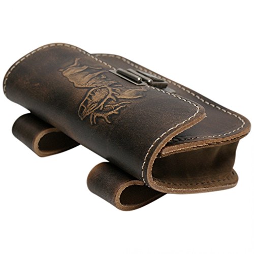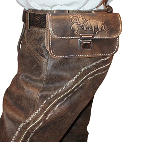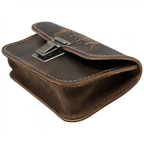 Exklusive Gürtel-Tasche mit JagdmotivDie praktische Alternative zur Schultertasche – für Herren und Damen geeignetExklusive Handarbeit 'Made in Austria'   NEU!Angenehme Größe mit viel Platz, passend zB. für Handys bis Größe Iphone 6sAus robustem dicken Rindsleder – Metallteile echt versilbert!Größe ca.: Höhe 10cm – Länge 17cm – Breite Boden 4,5 – viel StauraumDie Tasche kann auf einem Gürtel bis zu 6cm Breite getragen werden.Gewicht: ca.1400gr.   Farbe: braun mit Antik-PatinaDie Tasche ist ein handgefertigtes Original aus Österreich, aus robustem, dicken RindslederAlle Metallteile wurden in Österreich hergestellt und sind nickelfrei. Aufwendig im Galvanik-Tauchverfahren echt versilbert!Der Deckel ist aufwendig mit einem reliefartigen Jagdmotiv geprägt, man kann diesen mit einem Schnapper schließen Da jede Tasche ein absolutes Unikat ist, können die Fotos leicht vom gesendeten Exemplar abweichenWir haben laufend exklusive Trachtenmode und Accessoires für Damen und Herren!