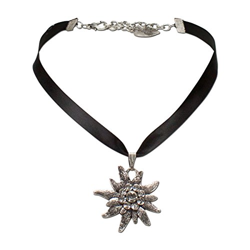 – Dirndlkette aus Satinband mit Strass Edelweiss Anhänger