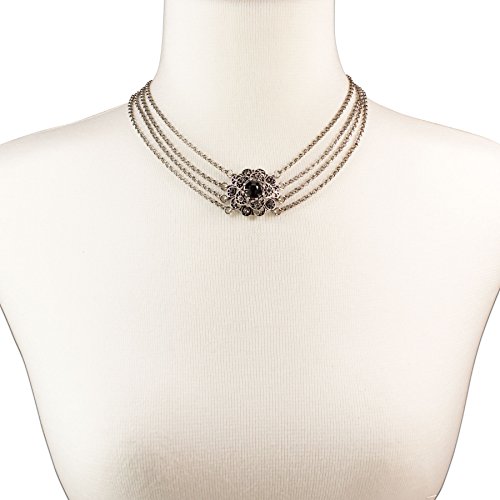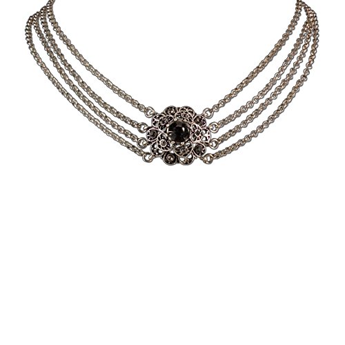 Altes Design, neu zum Leben erweckt. Diese nostalgisch anmutende Trachtenkette ist in der Mitte mit einem schimmernden Stein verziert. Die im Wasserfall-Design angebrachten Ketten runden das Bild unseres Nostalgie-Trachtencolliers ab. Einfach schöner Trachtenschmuck! Eigenschaften: – Länge Trachtenkette: ca. 32 cm + 7 cm Verlängerung – 4-reihige, nostalgische Dirndlkette mit Strass Stein Zierelement – Trachtenschmuck von Hand gefertigt