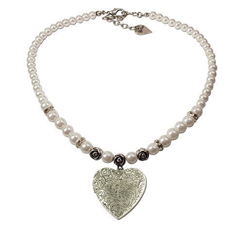 Trachtenschmuck * Trachtenkette Perlen & Amulettherz * Damen Dirndlkette * Perlenkette Trachtenherz * Oktoberfest Dirndl-Schmuck (creme-weiß)